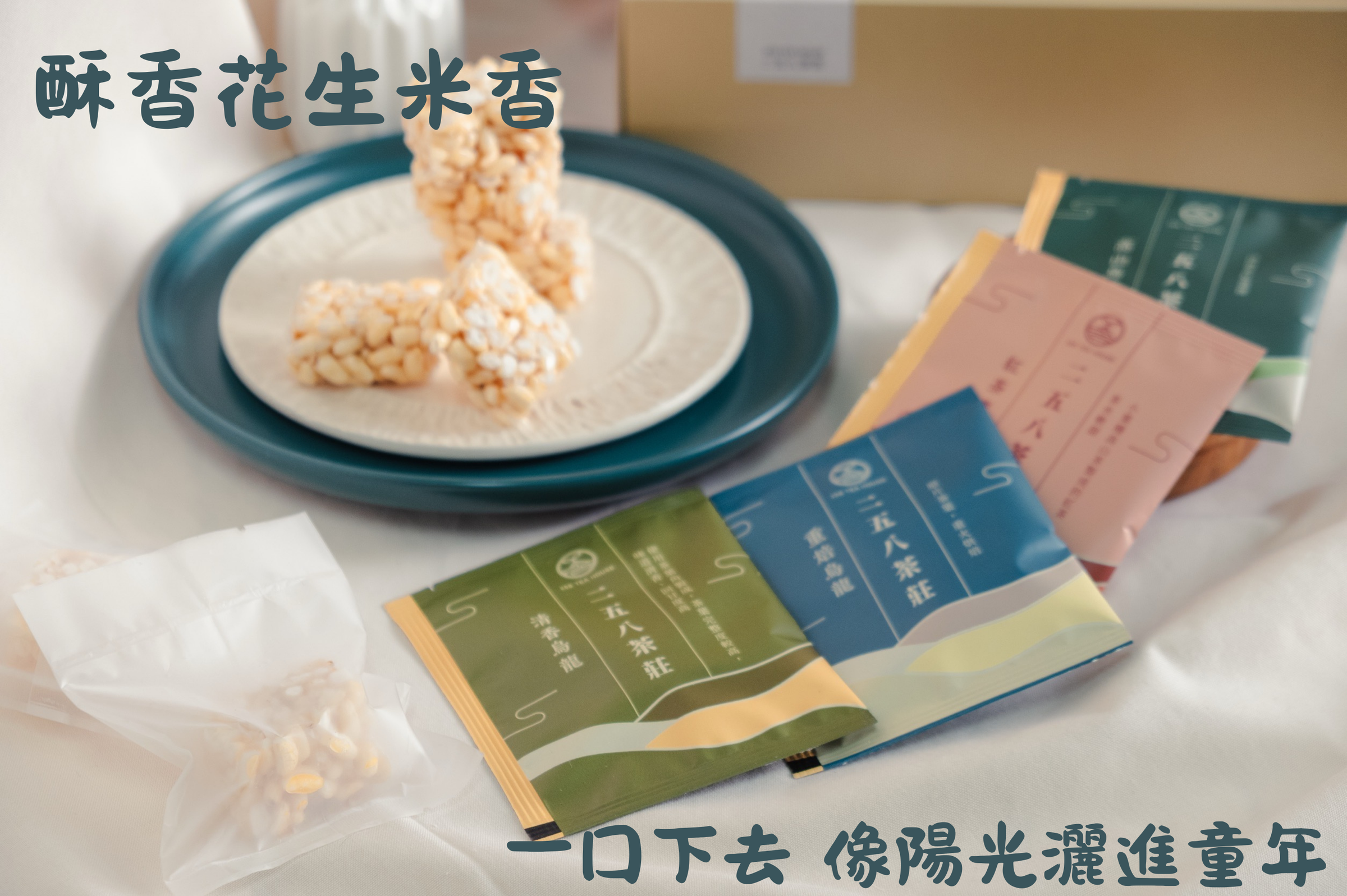 這份禮盒,把酥香的米香花生和我們家的綜合茶包放在一起。